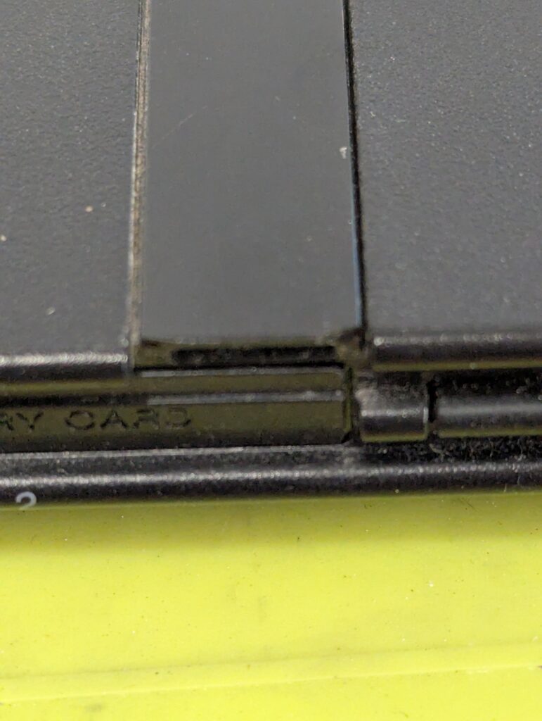 While cleaning the case, it was noticed that one of the corners of the gloss stripe on the top cover was broken. This isn’t too obvious by simply looking at the console, but causes the stripe to not to be attached in one of the sides. This was fixed by using double sided tape under the stripe.