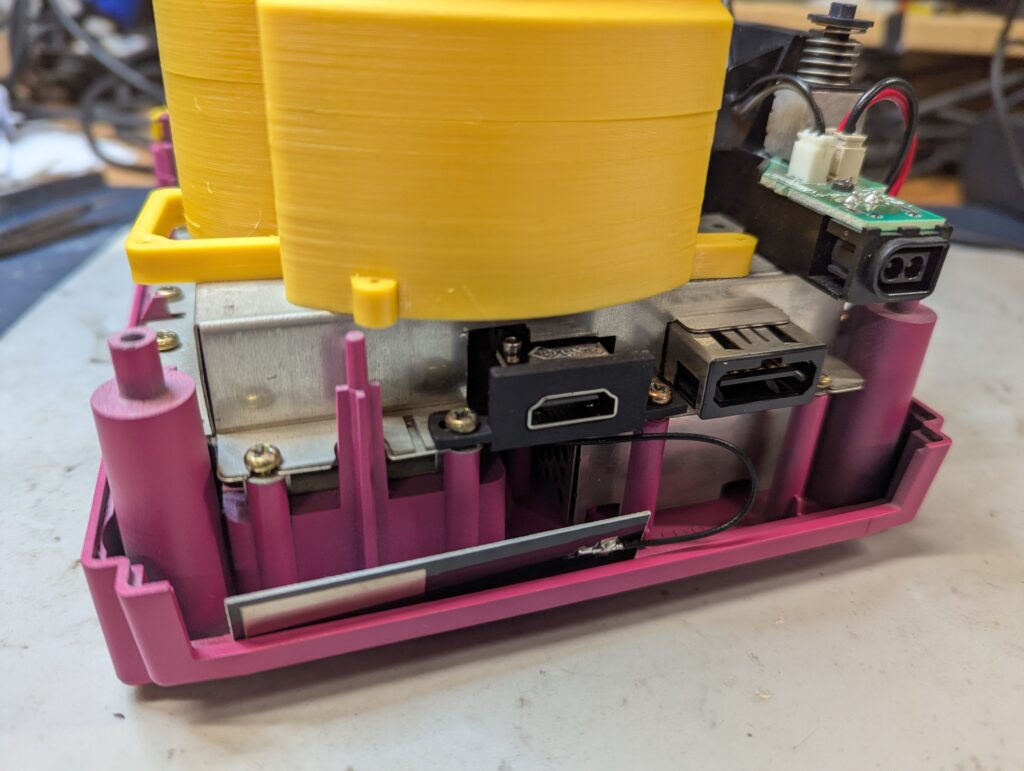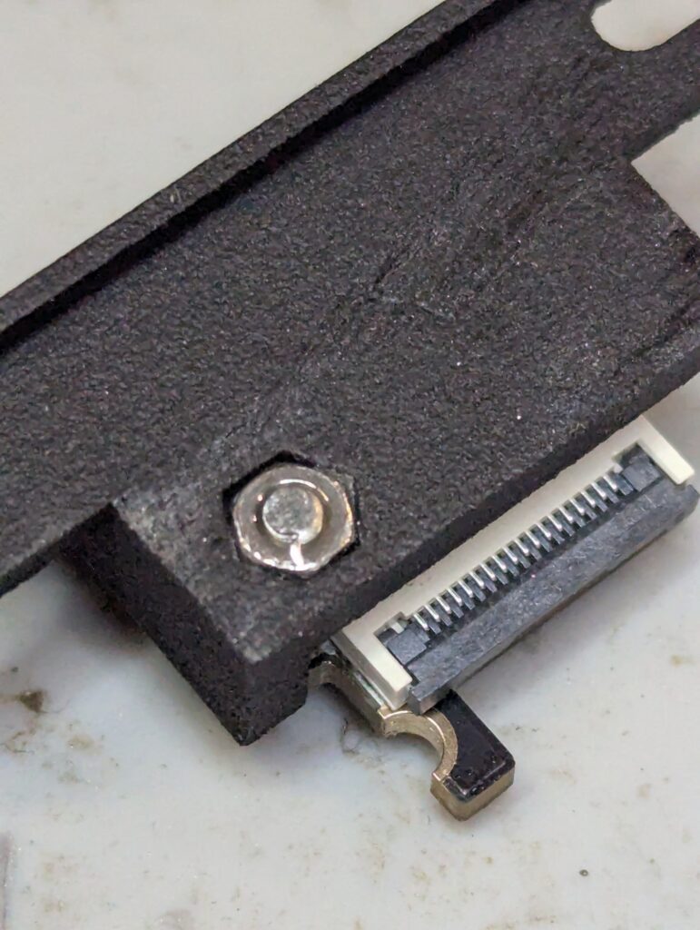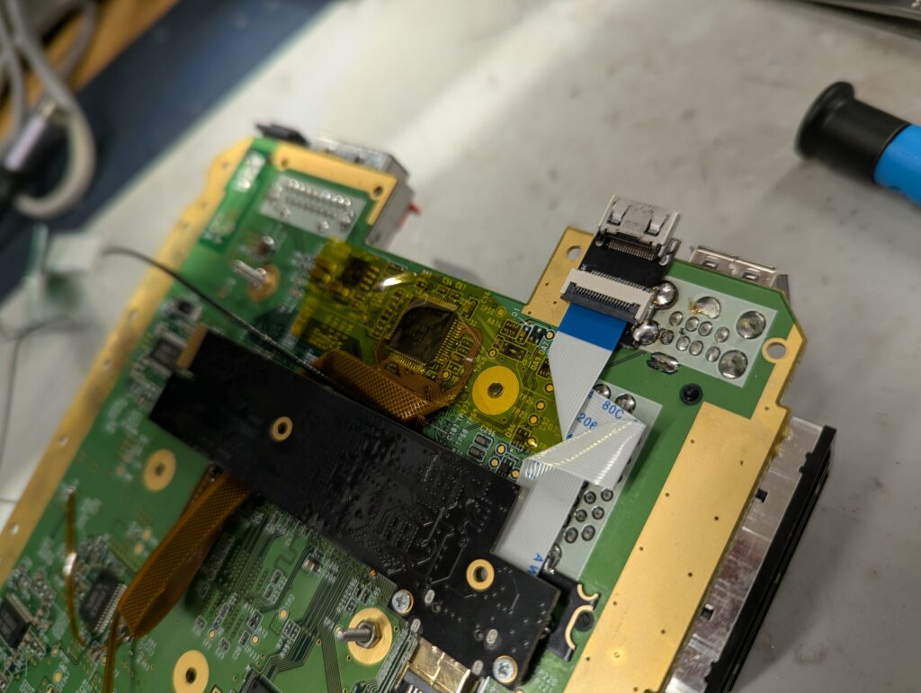 After that, the internal white flex to connect the external port to the internal port needs to be installed and the board to be put back into the shell with the external HDMI port bracket in the right place
