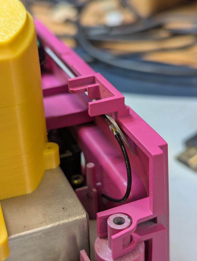 Final tests before putting all back together. Note where the antenna has been left by the back panel. It is not glued to it as that would prevent the console to be disassembled easily, and is also not glued to the metal shield as this will probably interfere with the antenna.