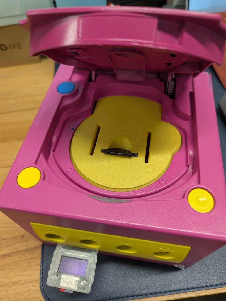 The GameCube was provided with a custom paint job and a GCLoader instead of the optical drive. The kit provided was a Basic edition. The first step was to prepare the console, which included: