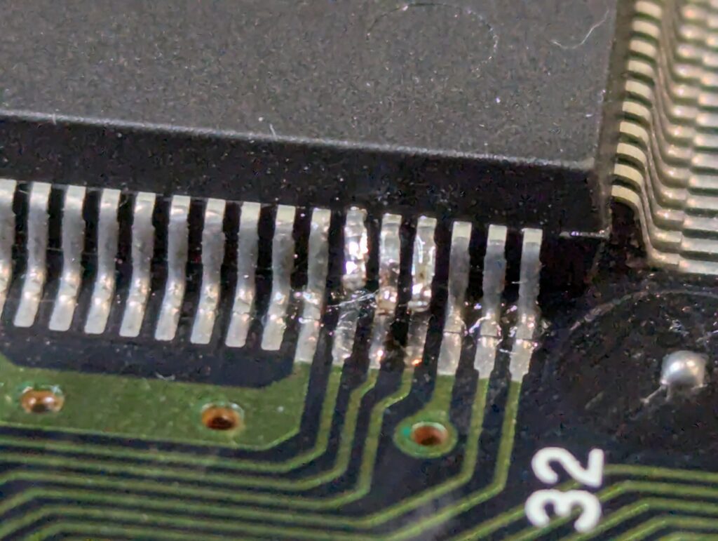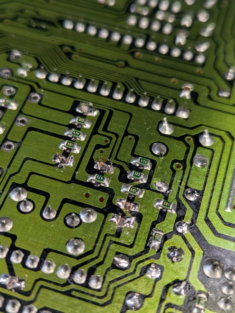 Since we are restoring composite as well as the headphones, a few SMD capacitors and resistors need to be removed in the bottom of the motherboard.