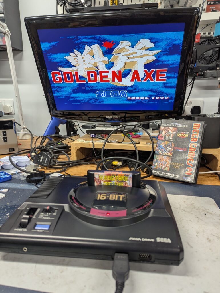 This order was for the recapping of a Mega Drive 1, installation of a Triple Bypass, and installation of switchless region-free mod. The customer also sent a PreAmp fix but its installation wasn’t necessary as the 3BP already bypasses the internal MD circuitry.