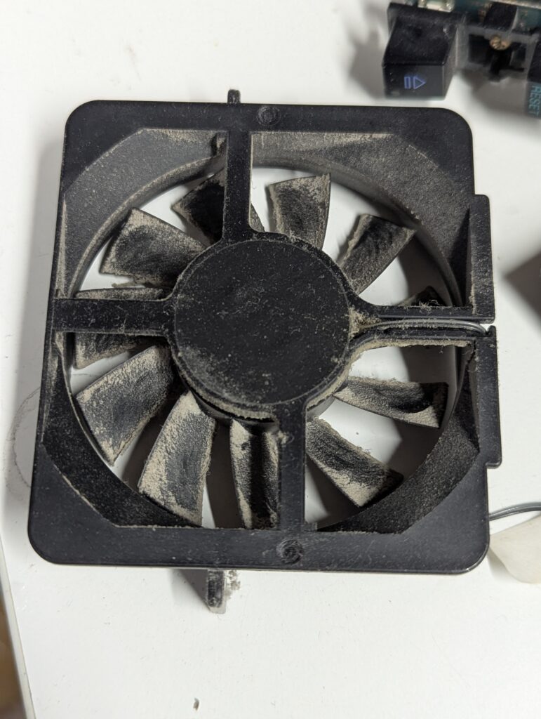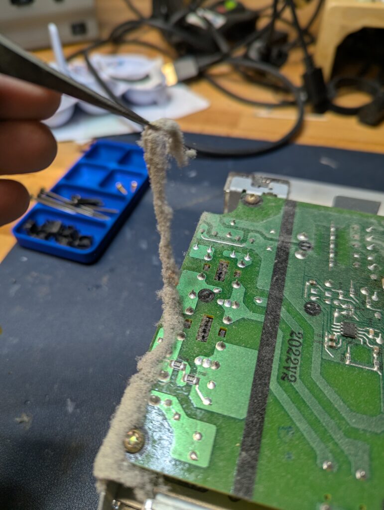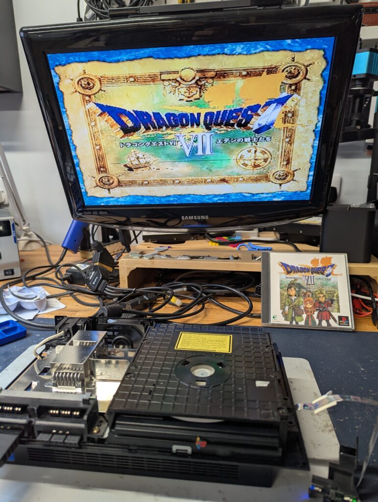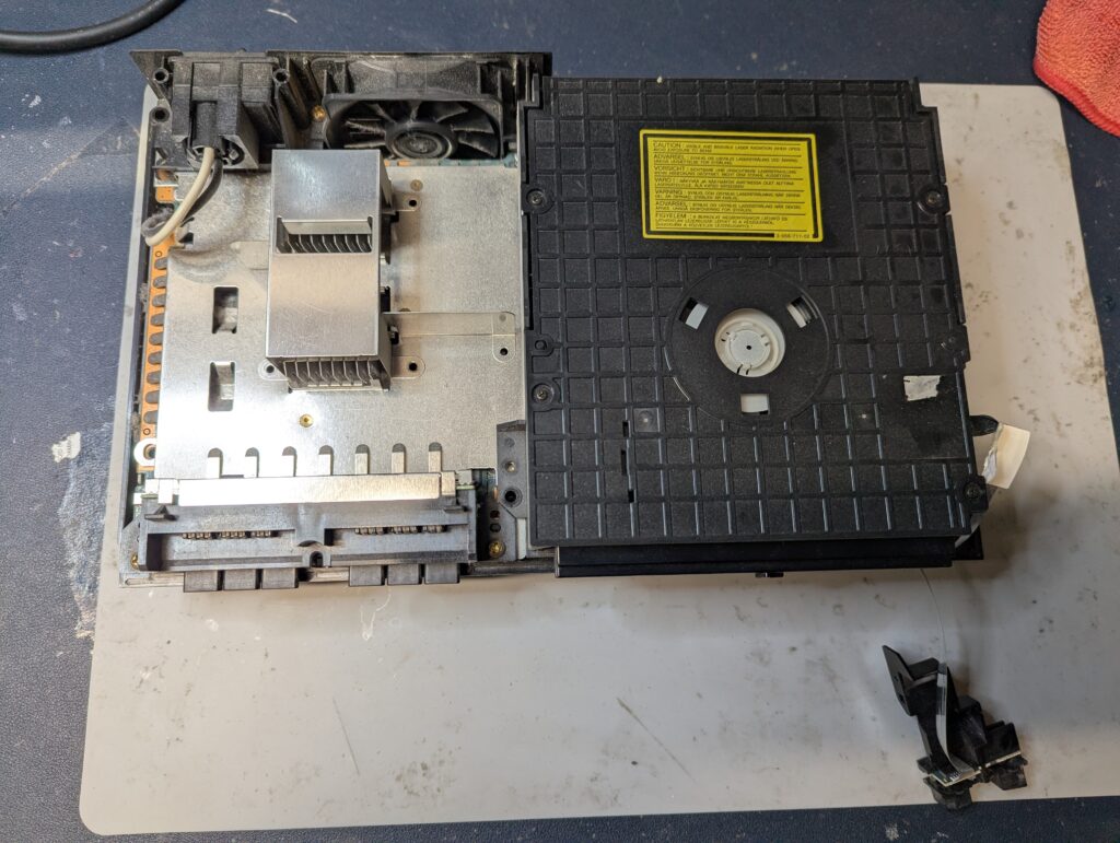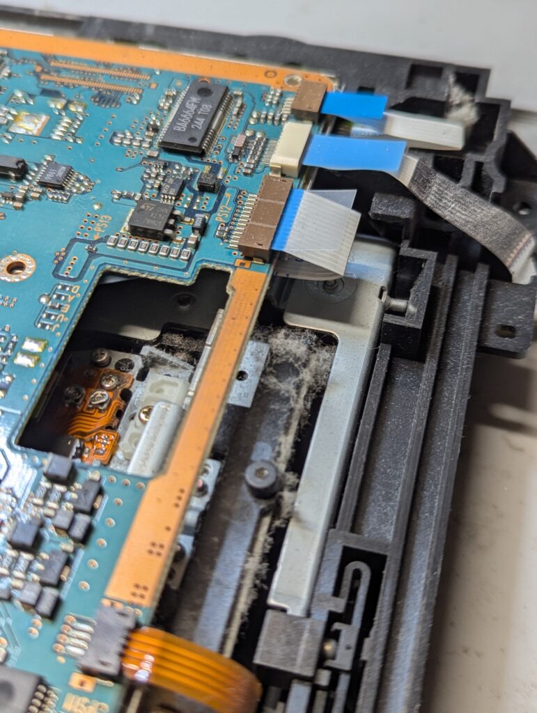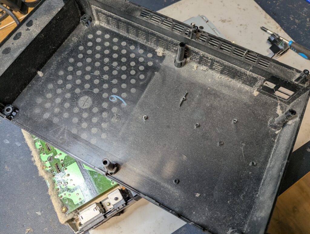 The console was never opened before and had a fair amount of dust and dirt, particularly in the inside. Prior to open it up, PS2 games would play but not PS1 games. The customer agreed to proceed with the modding in any case.