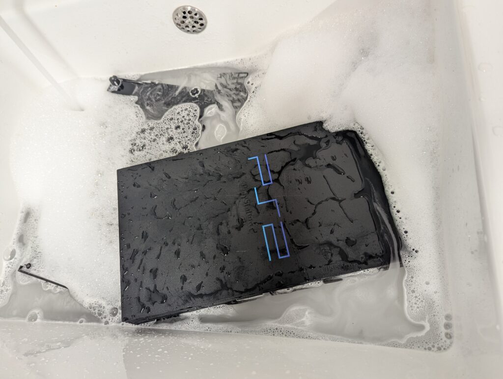 The first step was to wash the console shell with water and soap and replace the battery