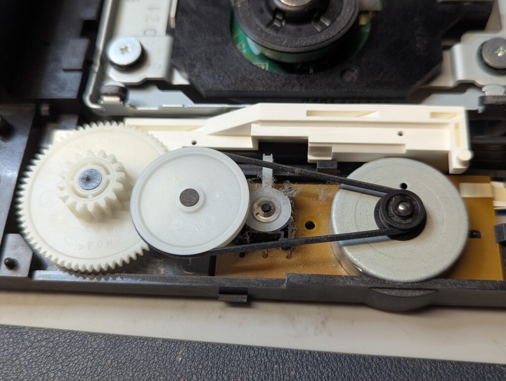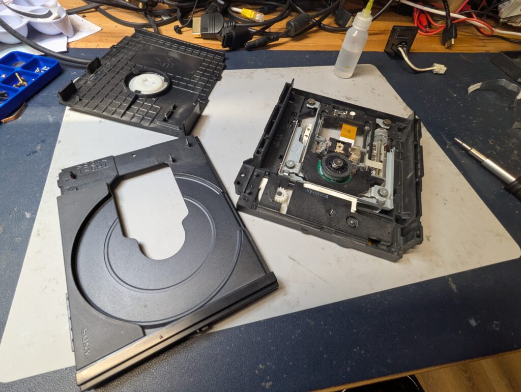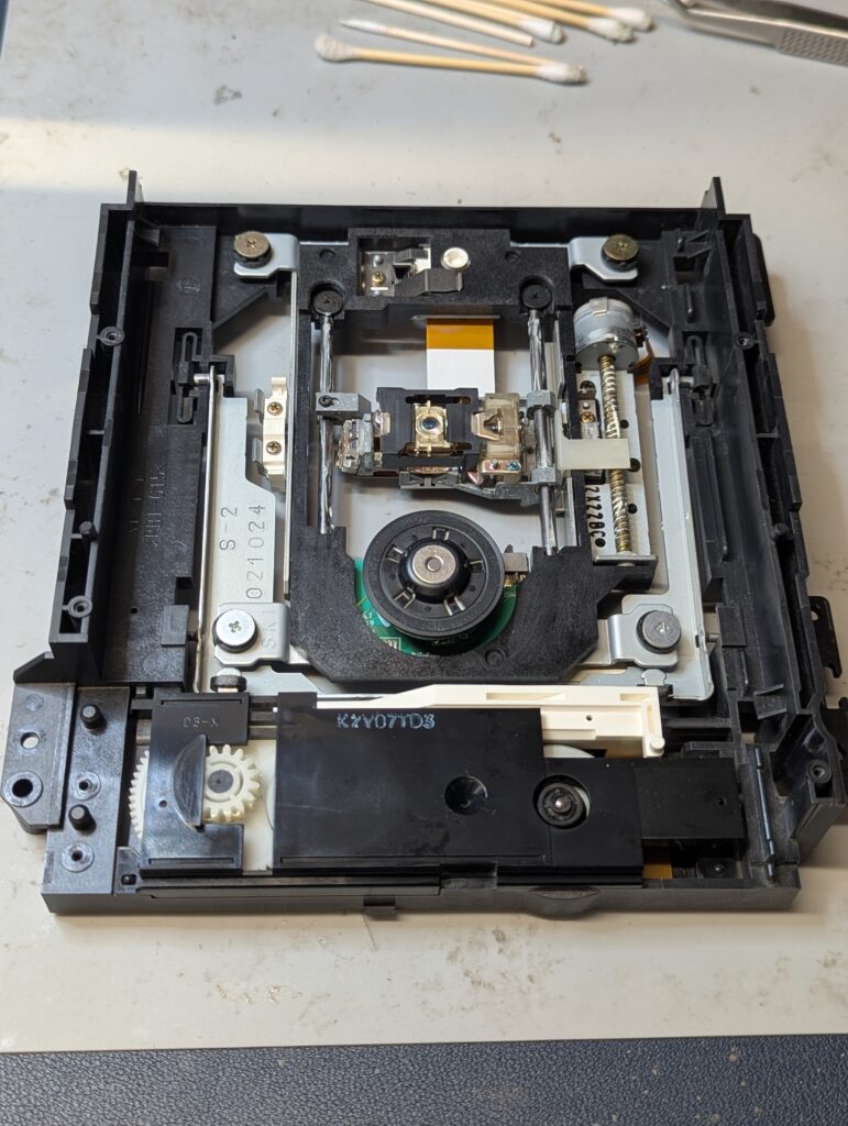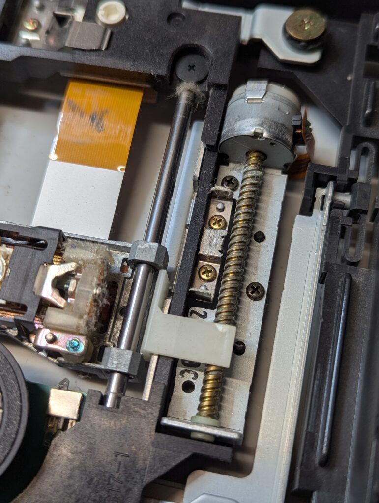 The DVD drive was also disassembled and cleaned, including changing of the belt and lubrication of the rails, as well as cleaning of the laser