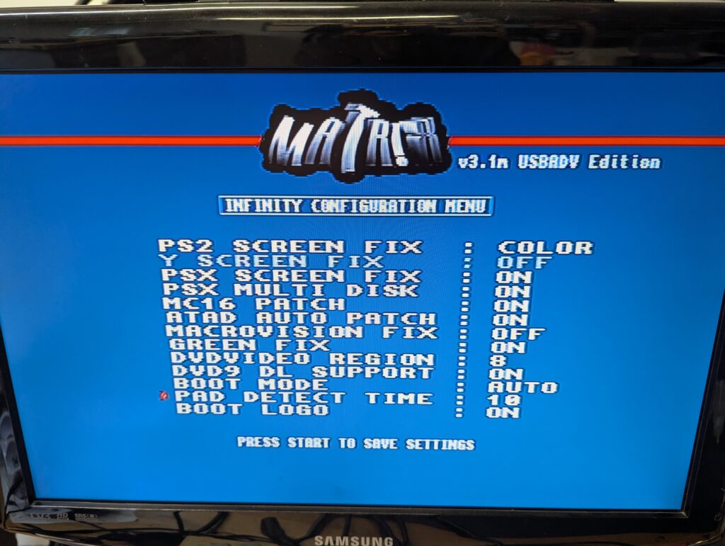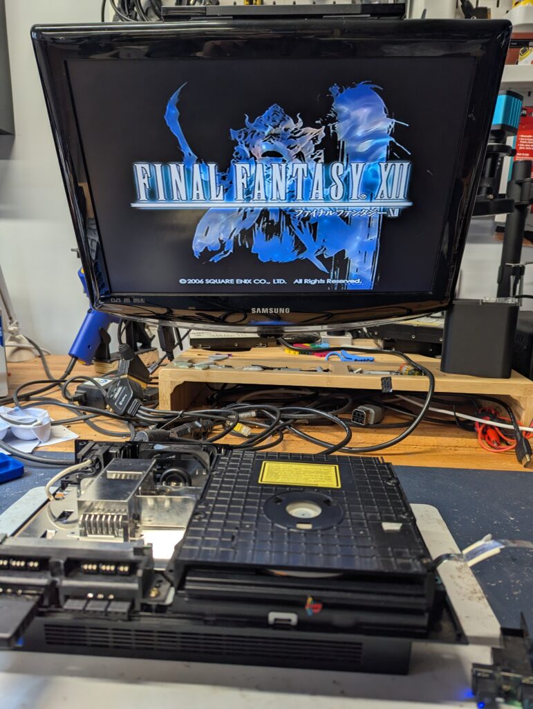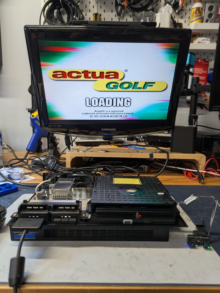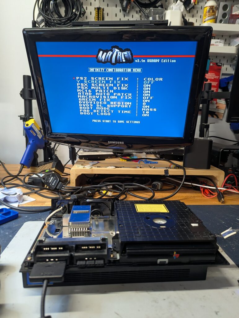Testing the console and the Matrix Infinity menu of the modchip before putting the console completely together