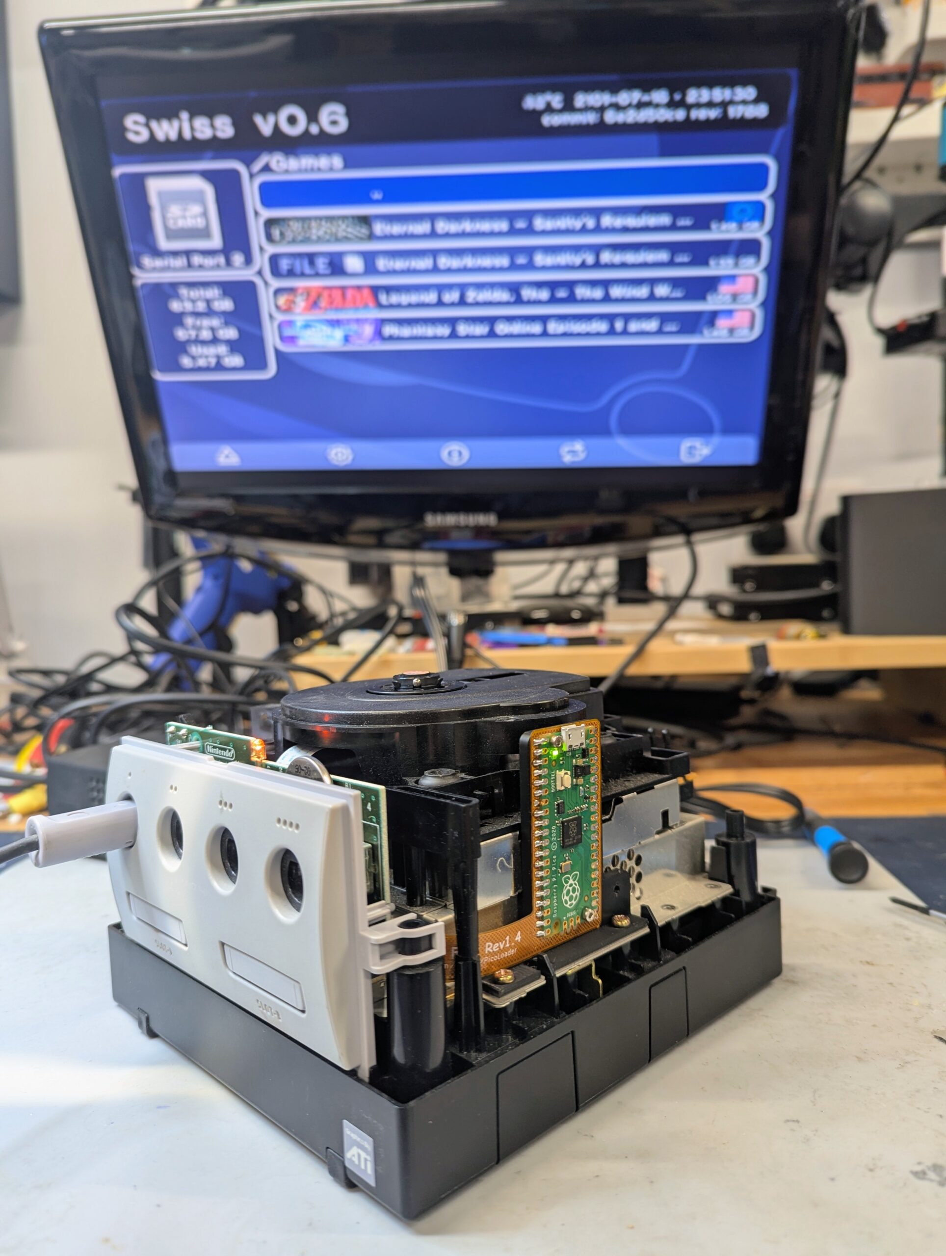A modded GameCube is normally combined with a software called Swiss, which allows you to launch games from the SD card. The preparation of the SD card includes the latest version of Swiss.
