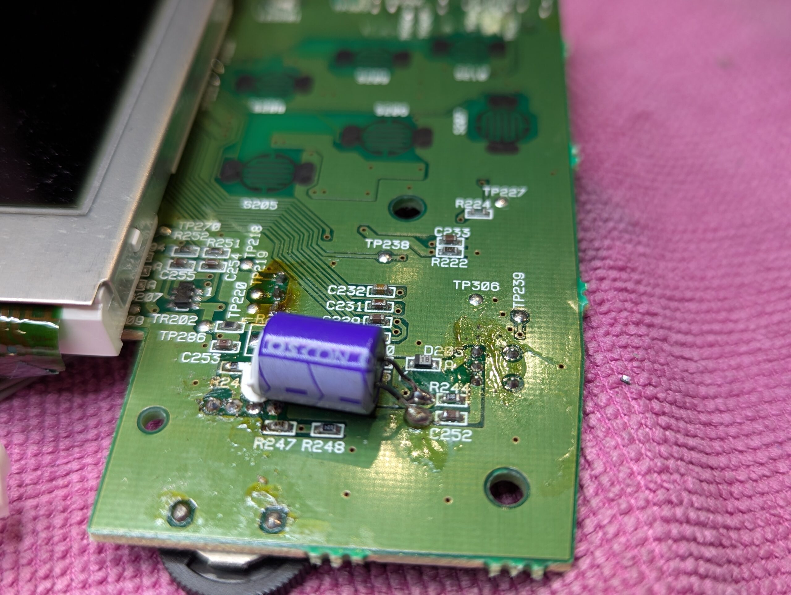 Replacement of the capacitors of your SEGA Nomad for SMD equivalents. There are over 30 capacitors to be replaced in a SEGA Nomad distributed across two PCBs. There are three original radial capacitor around the power connector as well as at the bottom of the daughter board.